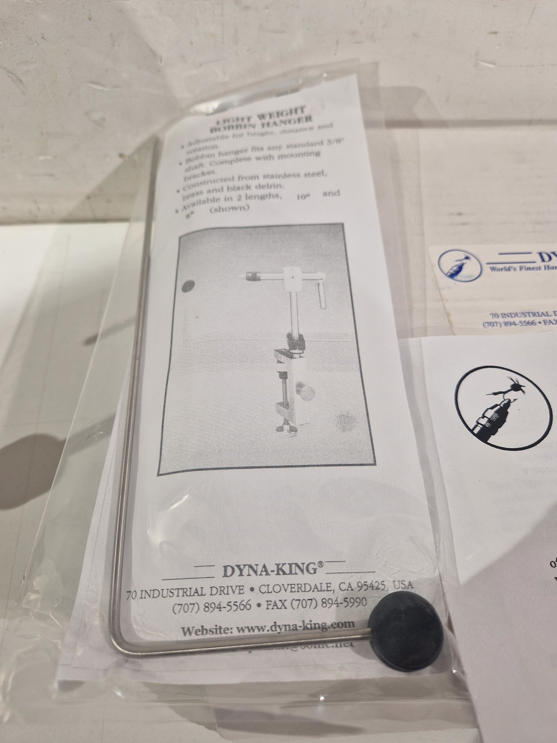 DEMO ...DYNA KING Barracuda Jr. Trekker Vise is now offered as a lighter weight vise to accomodate the angling trekker. Light weight in your travel bag as well as your pocket book. Vise less the base weighs less than 1/2 lb. with ball bearings in the housing for smooth rotation, adjustable drag, easy adjustments for a wide hook range 22 to 8/0, and includes a light weight bobbin hanger and your choice of base.