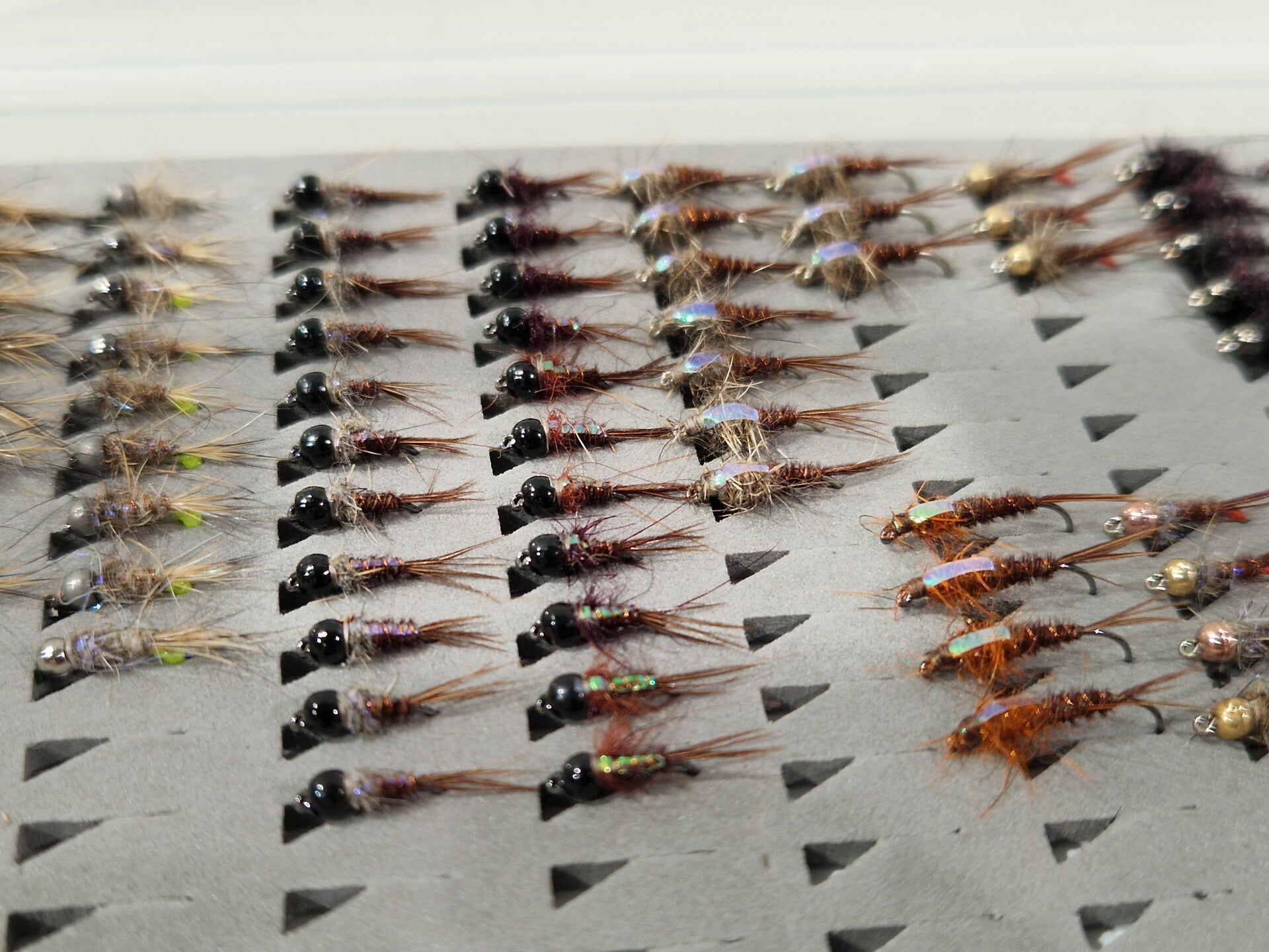 81 tungsten Pheasant tail , caddis , stonefly , tjech nimf . In vliegendoos. Op haakmaat 14 , 16 , 18 .